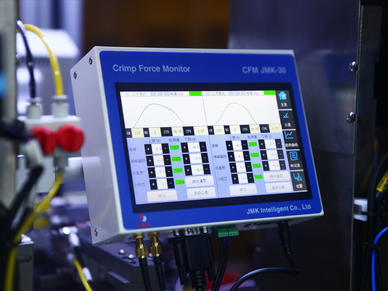 日精智能JM-600全自動(dòng)雙頭端子插殼機(jī),采用PC數(shù)控系統(tǒng),計(jì)算機(jī)數(shù)控人機(jī)交互界面,觸控鍵鼠雙輸入,操作簡(jiǎn)單易上手,生產(chǎn)管理更方便??蛇x裝壓力監(jiān)測(cè)系統(tǒng)和CCD影像檢測(cè)系統(tǒng),實(shí)時(shí)顯示產(chǎn)品影像和壓接力曲線,并進(jìn)行對(duì)比分析、壓接不良時(shí)會(huì)觸發(fā)警報(bào)并自動(dòng)分揀出不良品。加工全過(guò)程質(zhì)量監(jiān)控,極大地節(jié)省了人工成本,保證產(chǎn)品質(zhì)量,提高了生產(chǎn)效率。