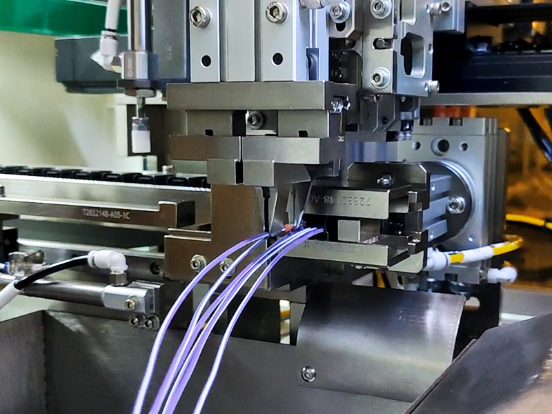 日精智能JM-601A+ 全自動(dòng)單頭浸錫 穿防水栓插殼機(jī),支持電線(xiàn)定長(zhǎng)切斷、兩端剝皮、單頭壓著、單頭穿防水栓插殼、單頭浸錫??缮a(chǎn)45-9999mm(可定制),1-12種線(xiàn)色選擇(標(biāo)配6色),支持#18~#28線(xiàn)號(hào)的生產(chǎn)。日精智能支持非標(biāo)定制,還可靈活擴(kuò)展多項(xiàng)附加功能:打號(hào)碼管、穿熱縮管、絞線(xiàn)等。